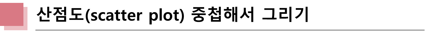 산점도 그래프를 중첩시킬 때 2가지 형태로 중첩시킬 수 있습니다. 첫번째는 색깔로 구분하는 것이고, 두번째는 점의 모양으로 구분하는 것입니다.